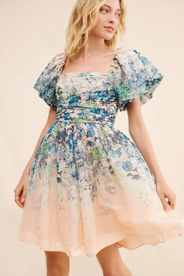 Smocked Ruched Mini Dress