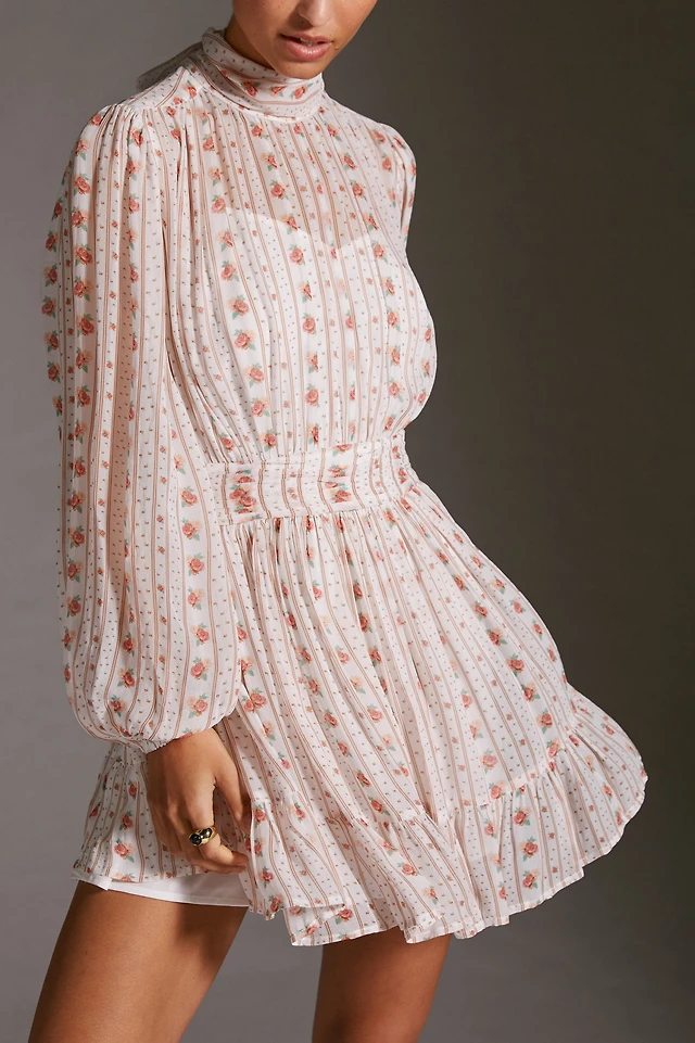 By Anthropologie Mock-Neck Button-Front Sweater Mini Dress