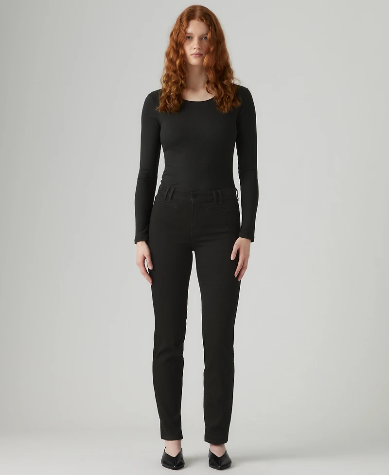 Enjoy a flattering fit in these tailored jeans from Levi's, featuring a straight-leg design that provides a timeless and versatile look. A built-in tummy panel offers smooth support for a sleek silhouette.