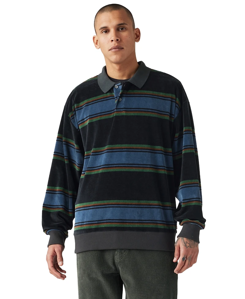 Wear a timeless rugby design in supersoft velvet with a classic striped pattern on this Levi's shirt. The two-button placket and relaxed-fit offer a comfortable and stylish layer for cooler days.