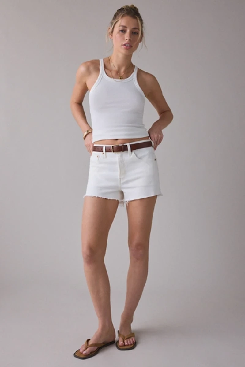 The original 501 jean shorts by Levi's® are best-sellers for a reason. Denim short made with a slim curve-skimming fit, classic 5-pocket styling and mini hem that hits at the upper-thigh.