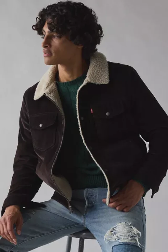 CORDUROY JACKET WITH FAUX LEATHER COLLAR