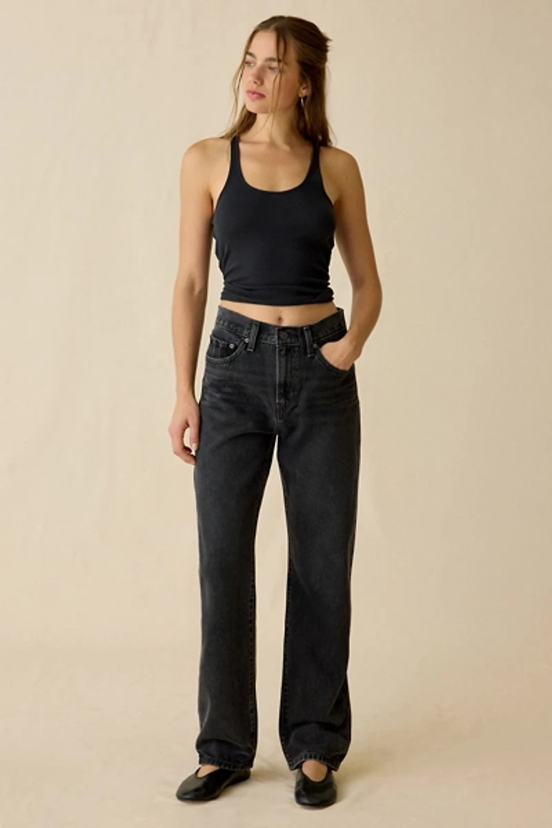Effortless-cool Levi’s® straight leg jeans crafted in rigid, 100% cotton denim that will soften with wear. Loose jeans designed with a high-rise waistline, classic 5-pocket styling, and a relaxed leg fit you'll want to wear with everything!
