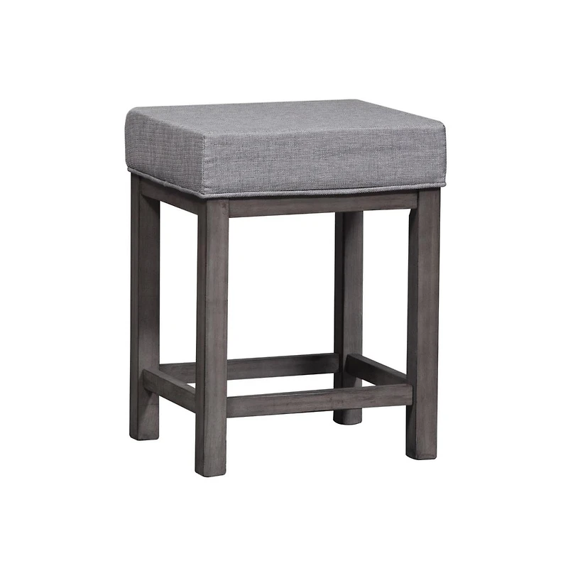 Simple and stylish, the Tanner Creek console stools are constructed of solid rubberwood block legs in a Greystone finish with a padded upholstered seat in a grey tweed fabric. Set includes three stools.