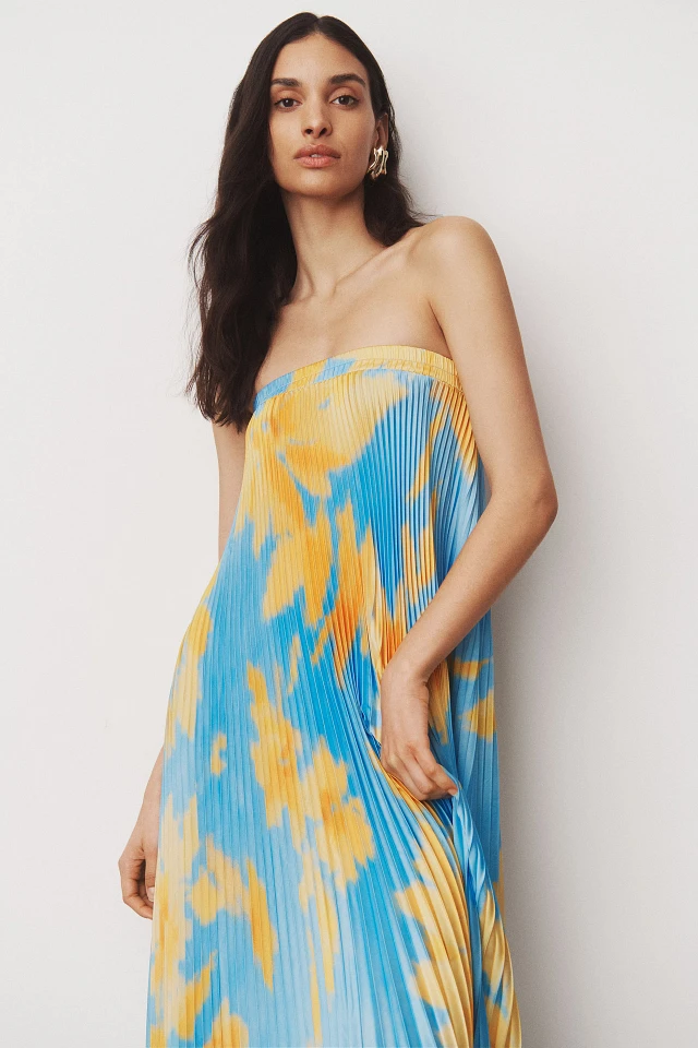 By Anthropologie Strapless Twofer Pleated Midi Dress