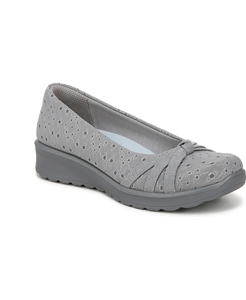 First class comfort. Airport security's a breeze when you slip into these travel-friendly ballet flats. Stretch fabric upper with linings and a round toe. Knotted details. Bzees Air Step Technology: Designed so you'll feel weightless, energized and free. Ultra Lightweight: Step lightly with a nearly weightless feel. Dynamic Stretch Fabrics: Move freely in shoes with built-in stretch. FreeFoam Comfort: Low pressure insoles with maximum foot contact and cushy arch support. Comfort Cone Gel: Get that extra ""ahhhhh factor"" with heel impact shock absorption and cushioning in all the right places. SoCush arch support. Odor Control technology. 0.5-inch platform, 1.25-inch heel. Get Width It: Countless pairs of Bzees come in wide width shoes for women. Machine Washable: Wash on cold and air dry.