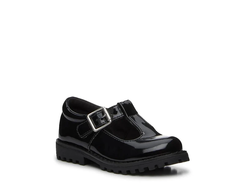 Enjoy a sophisticated staple in the Lil Lana Mary Janes from Mix No. 6. This patent pair is complete with a classic sillhouette, a glossy sheen, and a chunky lug sole. Complete with a hook & loop closure that offers easy access and a secure fit.