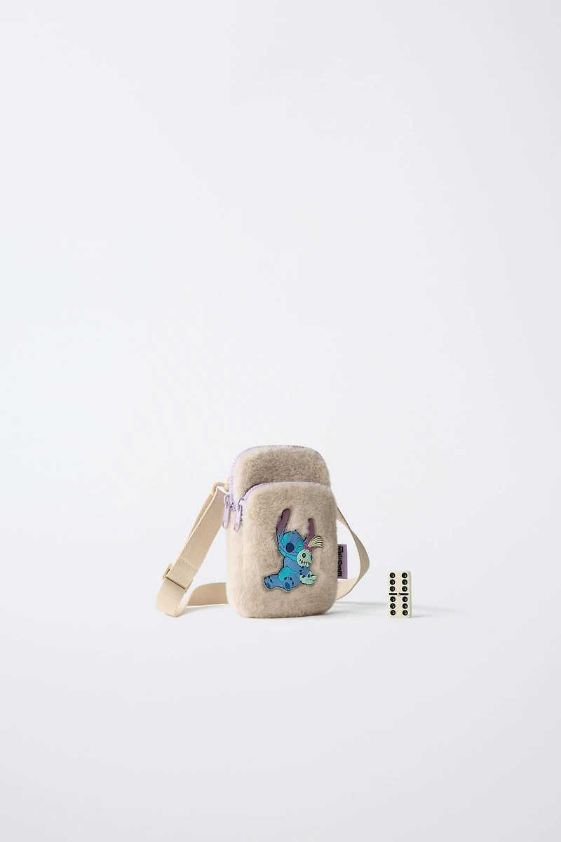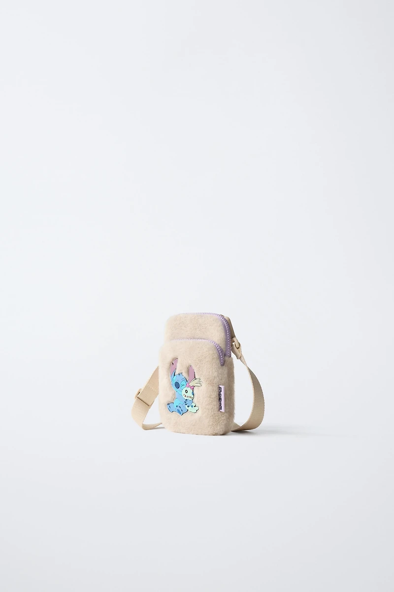 LILO & STITCH © DISNEY crossbody phone case. Main compartment with zip closure. Additional front pocket with zip closure. Features a touch screen on the back. Adjustable shoulder strap.