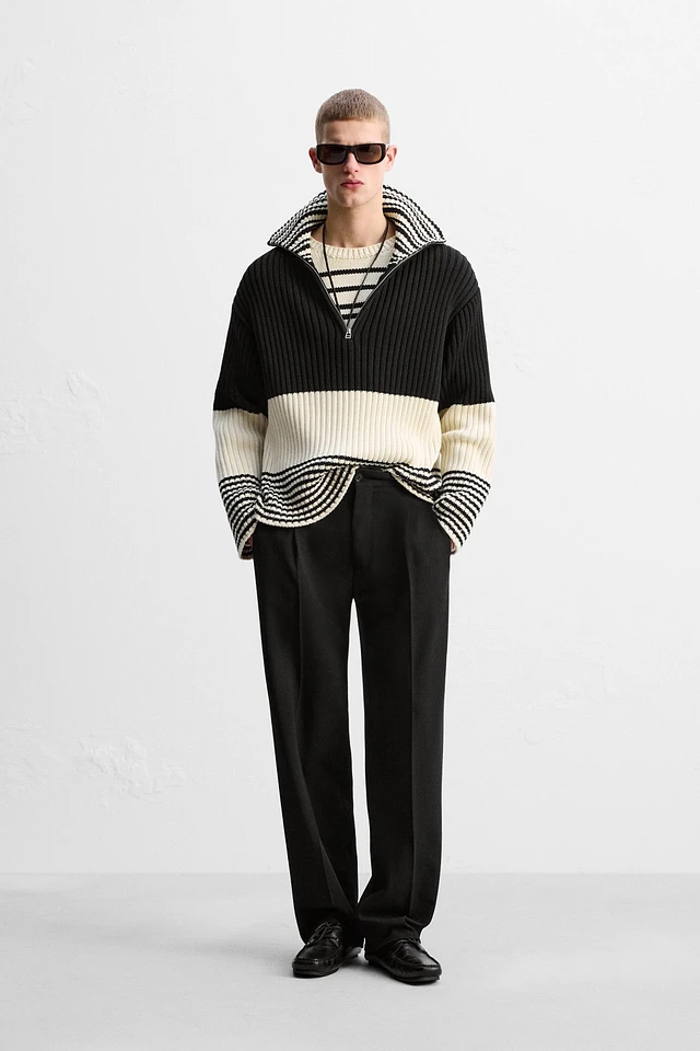 LIMITED EDITION STRIPED ZIP NECK SWEATER