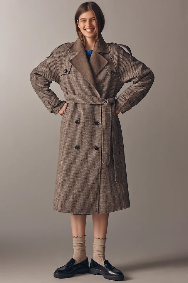 Line & Dot Henry Plaid Wool Blend Trench Coat