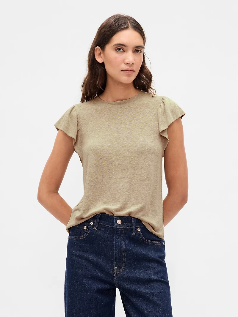 Linen-Blend Flutter-Sleeve T-Shirt in Bloomington, MN