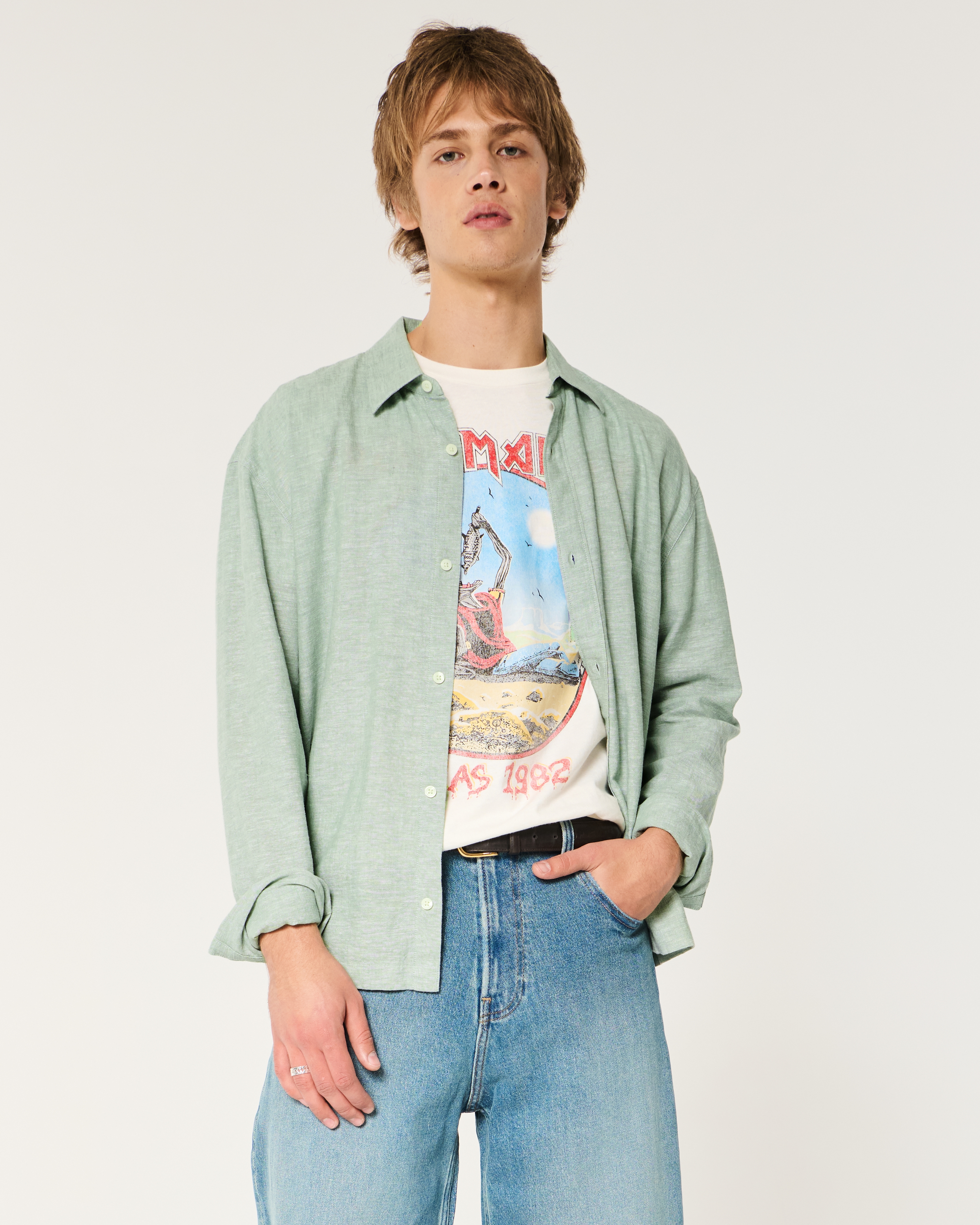 Linen-Blend Loose Button-Down Shirt