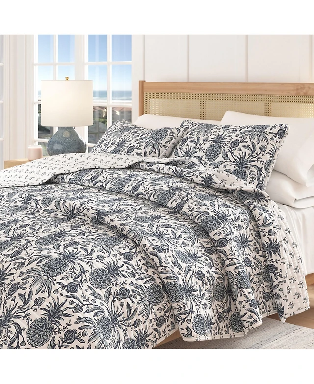 Linery & Co. Cotton Stitched Reversible Coastal Quilt and Sham Set - Pineapple grove