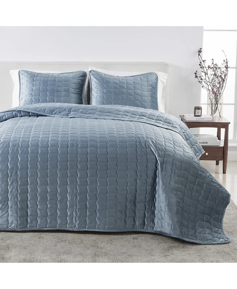 This box-stitched velvet quilt set is the embodiment of opulence and comfort. The box-stitch enhances its plush texture but also adds diion to the rich colors and texture. Its dual-sided velvet design provides an all around luxurious experience.