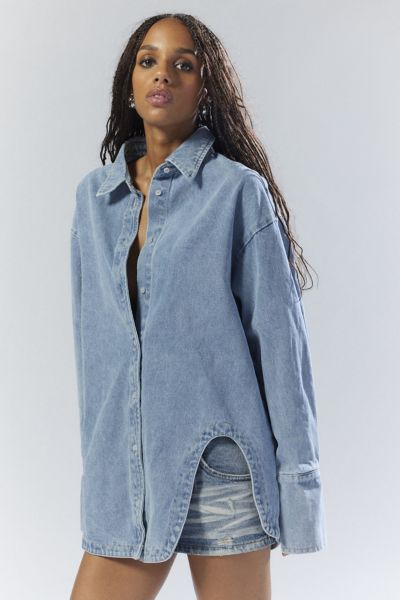 BDG Polly Denim Slim Short Sleeve Button-Up Shirt