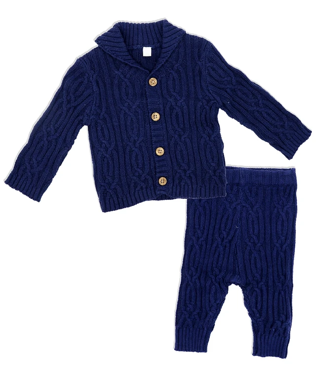 Little Gent Baby Boys Shawl Collar Knit Cardigan and Pants, 2 Piece Set