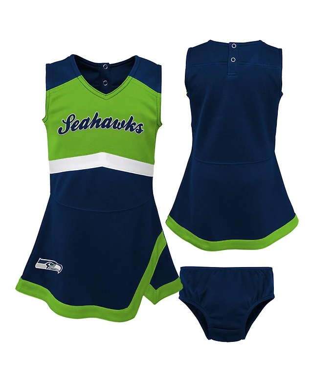 Little Girls Navy Seattle Seahawks Two-Piece Cheer Captain Jumper Dress with Bloomers Set