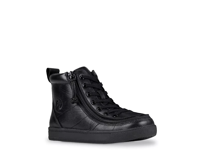 Take her adorable look to new heights with the Classic Lace high-top sneaker from Billy. Multi-tone laces and shimmery paneling highlight this sneaker while the memory foam footbed and rubber sole let her take confident strides. Its adaptive closure ensures an accessible fit.