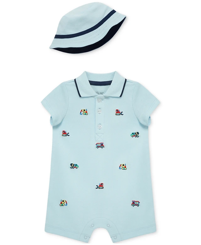 Little Me Baby Boys 2-Pc. Embroidered Cotton Romper & Bucket Hat Set