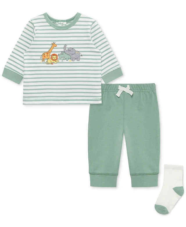 Little Me Baby Boys Jungle Striped T-Shirt, Jogger Pants & Socks, 3 Piece Set