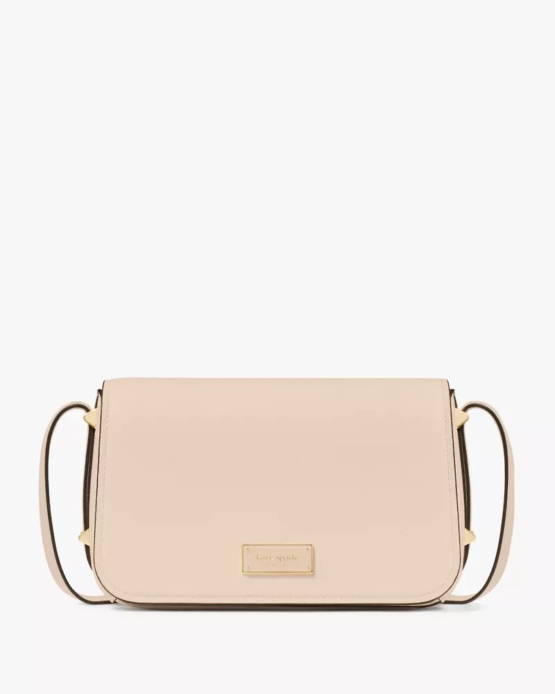 - Measurements9" W x 6" H x 3.25" D FeaturesPlaque logoMagnetic snap closureAdjustable crossbody strapImported MaterialsLEATHERFaille liningSmooth leather trimPebbled leather Style NumberKJ911-1
