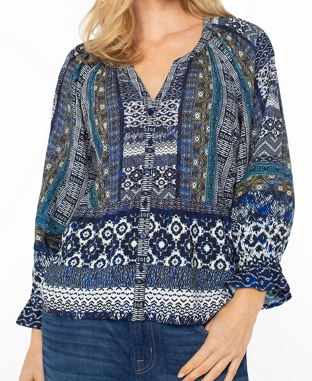 Liverpool Los Angeles Petite Mixed-Print Button-Front Blouse