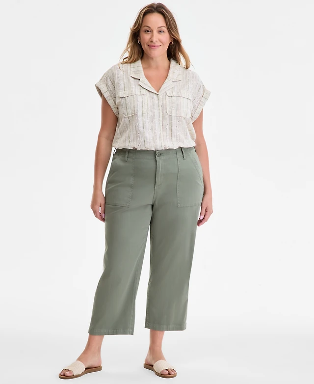 Liverpool Los Angeles Trendy Plus Size Cargo Wide-Leg Cropped Pant