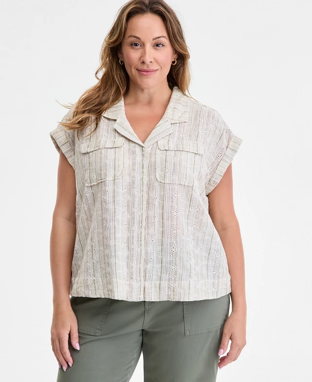 Liverpool Los Angeles Trendy Plus Sleeveless Dolman Camp Shirt