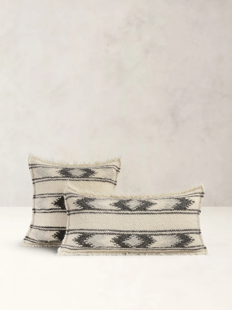 A celebration of natural wool grounded in a centuries-old approach. This pillow was made in Ukraine by craftswomen restoring the tradition of Lyzhnyk weaving. Natural undyed wool fibers are washed in the river to preserve their natural state. These fibers are then spun and woven by hand, before they're brushed on one side to produce a unique textured effect. Invisible zip closure. Made in Ukraine. Pillow inserts are sold separately and are sized slightly larger than our pillow covers to create a fuller effect.