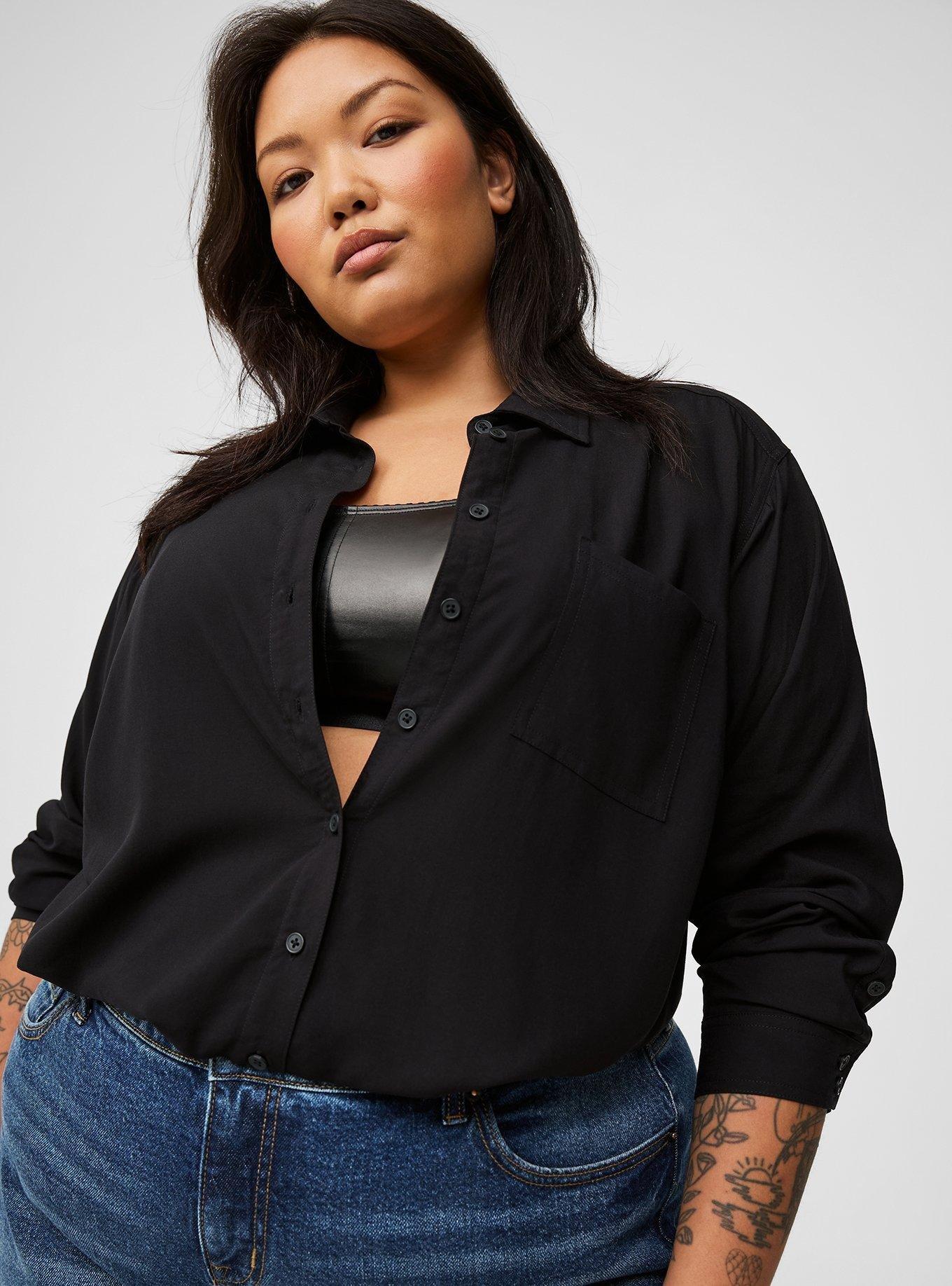 Expertly tailored to fit your body, this clean-cut button-up shirt is long enough to give you the perfect coverage.