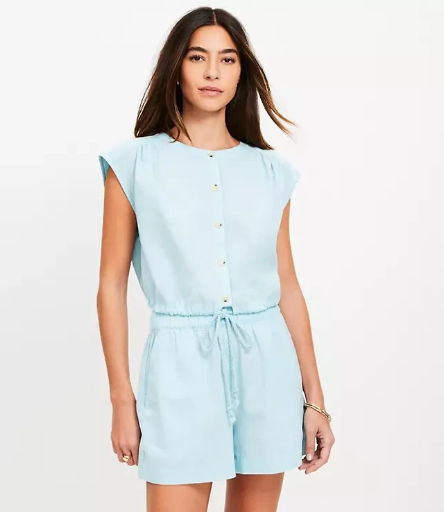 LOFT Beach Linen Cotton Drawstring Hem Top