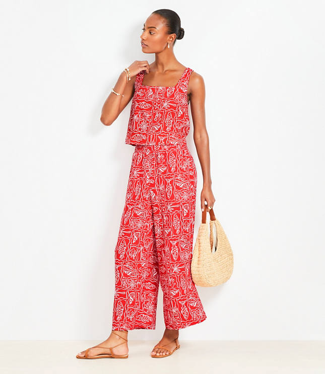 LOFT Beach Seaside Smocked Wide Leg Crop Pants