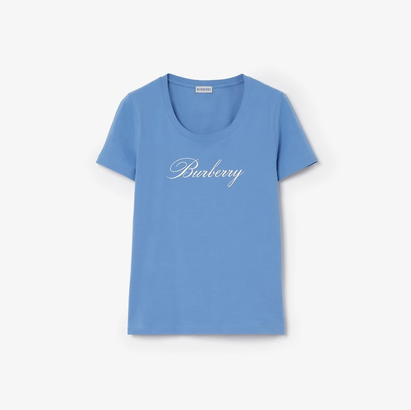 Logo Stretch Cotton T-shirt in Periwinkle blue - Women | Burberry® Official