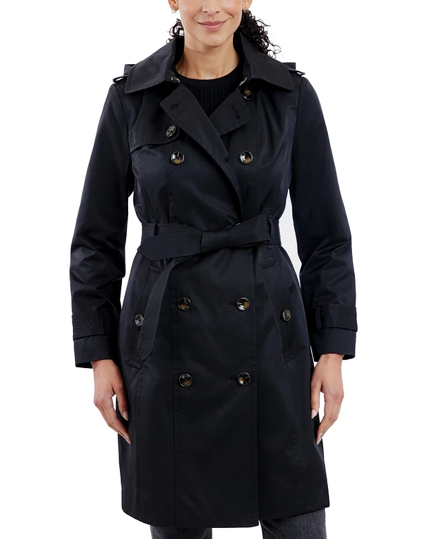 London Fog Women's Double-Breasted Hooded Trench Coat, Created for Macy's