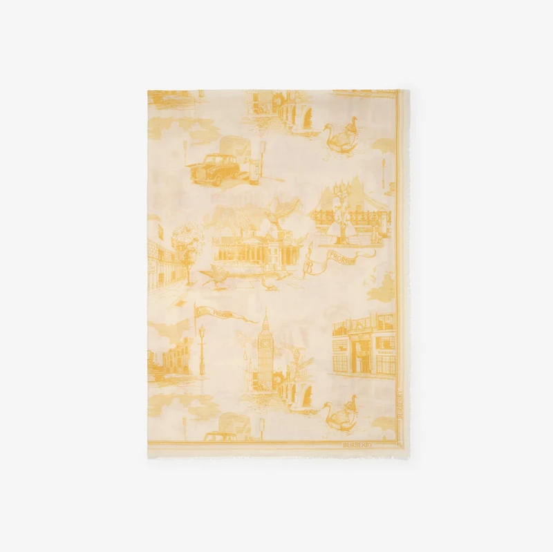 London Landmarks Wool Silk Scarf in Custard beige | Burberry® Official