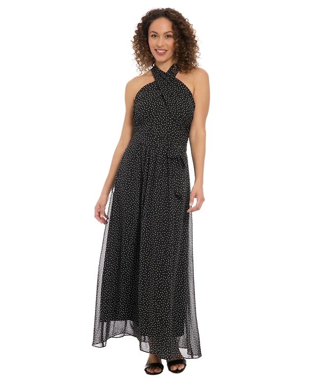 London Times Petite Crochet Halter Midi Dress
