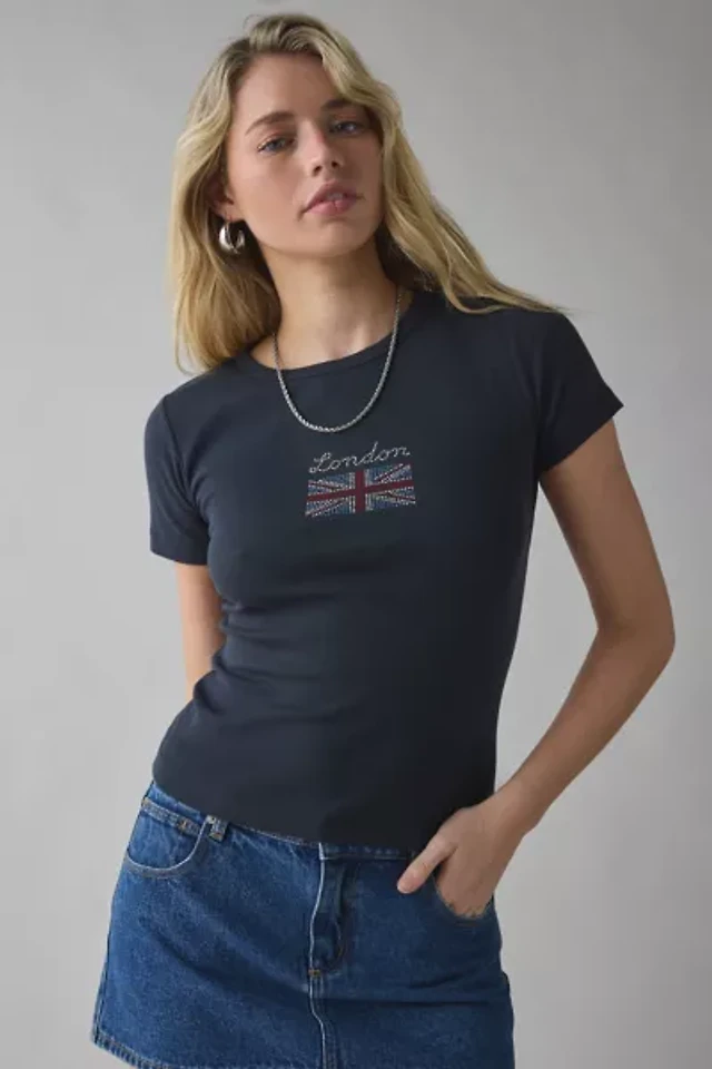 London Union Jack Flag Rhinestone Graphic Baby Tee