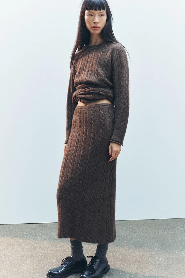 LONG CABLE KNIT WOOL BLEND SWEATER