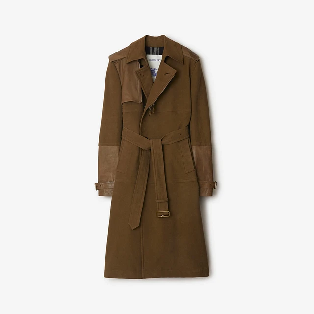 Long Cotton and Leather Trench Coat in Bramble - Men | Burberry® Official