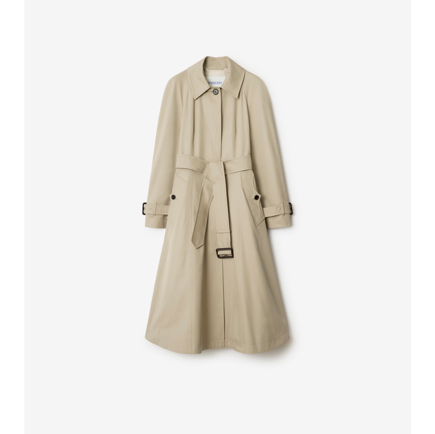 Long Gabardine Ellingham Fit-and-flare Car Coat in Quill beige - Women, Cotton Gabardine | Burberry® Official