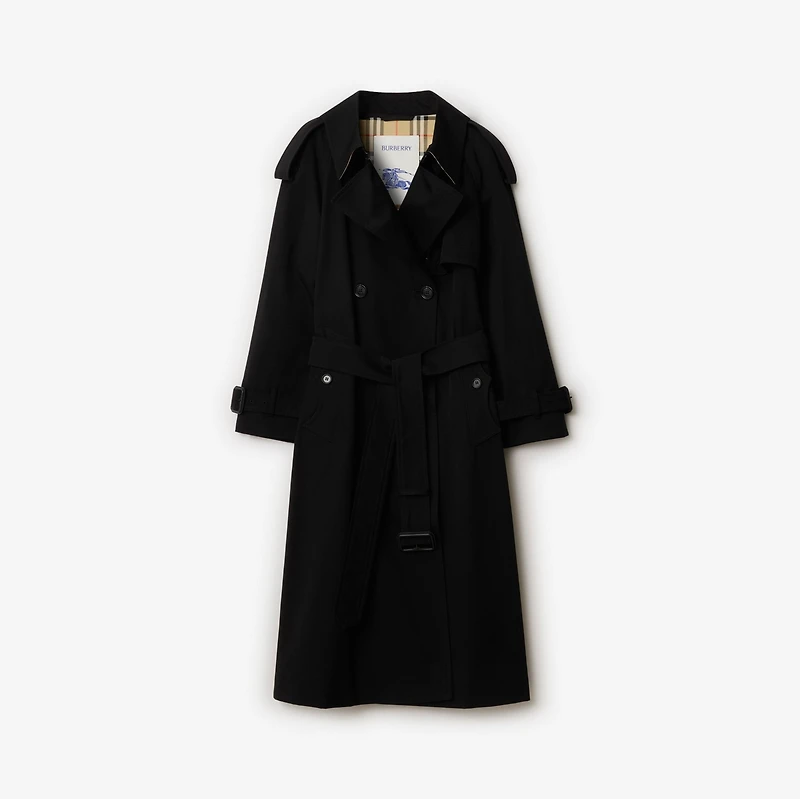 Long Gabardine Fitzrovia Trench Coat in Black - Women, Cotton Gabardine | Burberry® Official