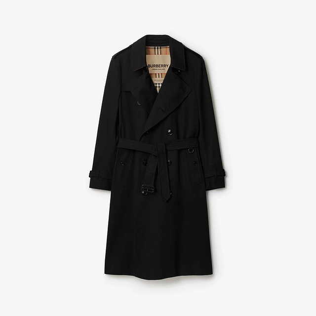 Mid-length Kensington Heritage Trench Coat in Black - Men, Cotton Gabardine | Burberry® Official