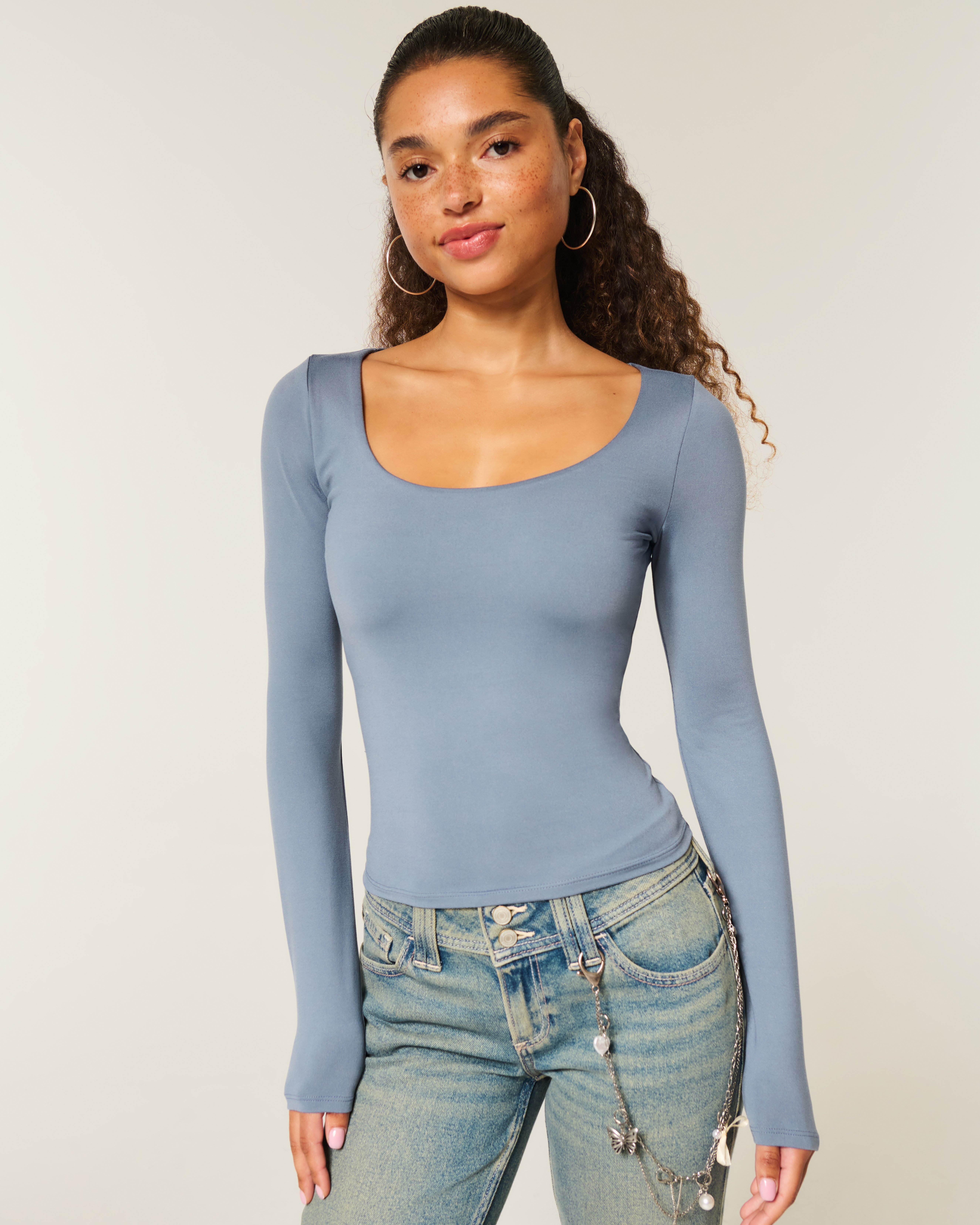 Long-Sleeve Seamless Fabric Scoop Baby Tee