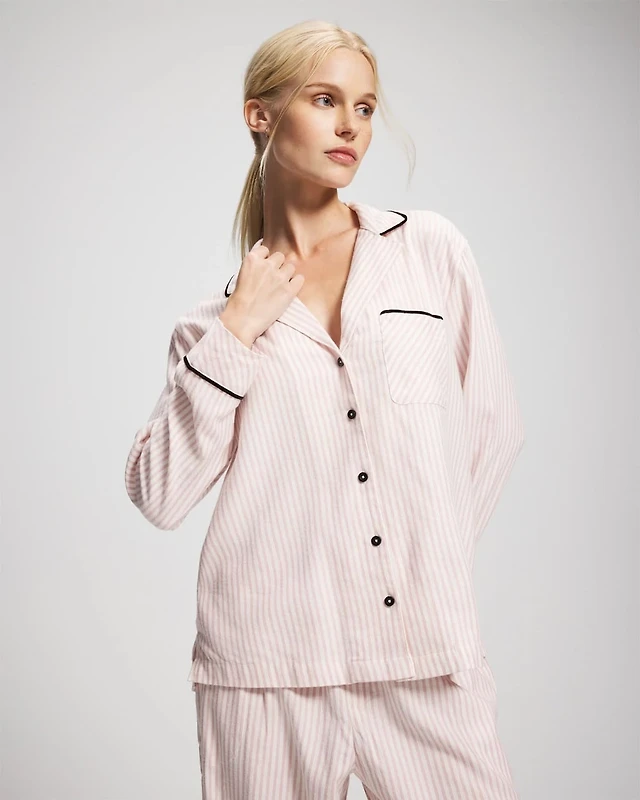 Long-Sleeve Notch Collar Pajama Top