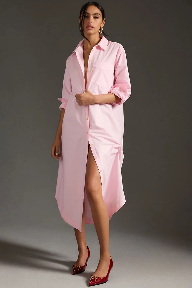By Anthropologie Draped Long-Sleeve Midi Shirt Dress