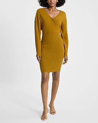 Ribbed Surplice Long Sleeve Mini Sweater Dress