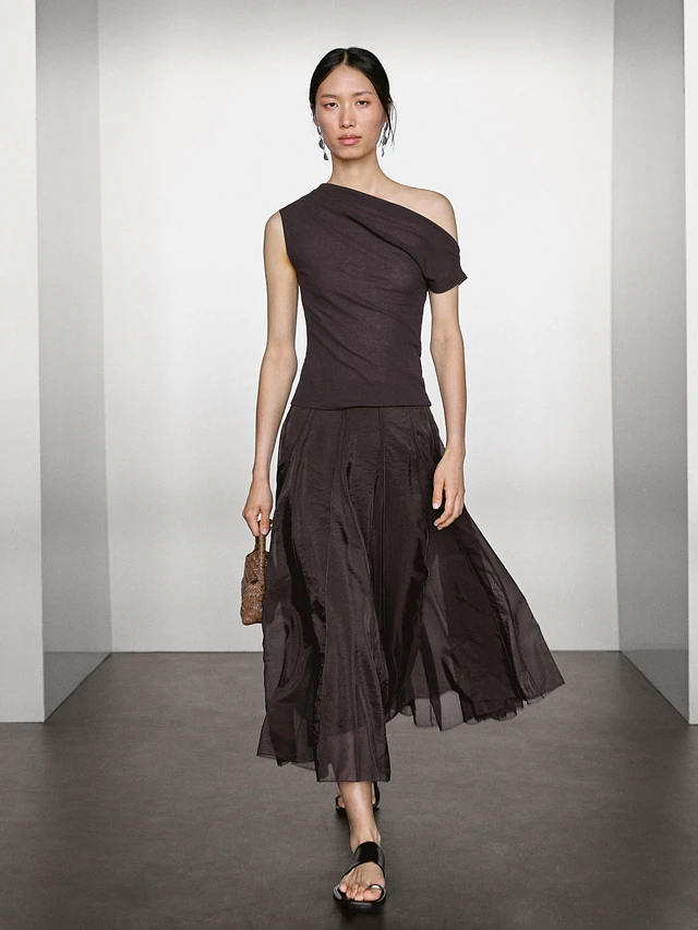 Long voluminous skirt with godet detail