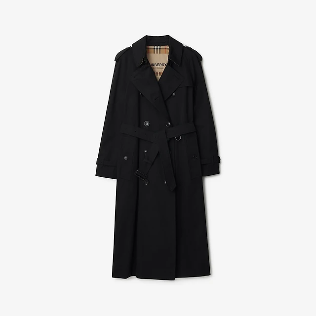 Long Kensington Heritage Trench Coat in Black - Women, Cotton Gabardine | Burberry® Official