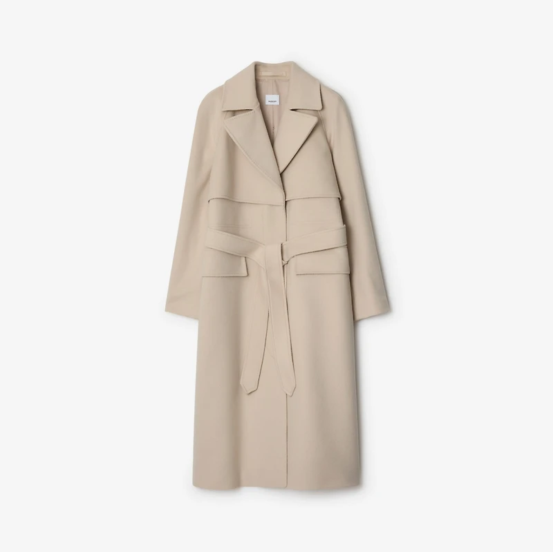 Inspired by our heritage styles, a trench coat in wool cashmere. The design is tailored to a regular fit with wide lapels and exaggerated gun flaps. Single-breasted button closure Self-tie belt Side flap pockets Back button vent Burberry Check undercollar
