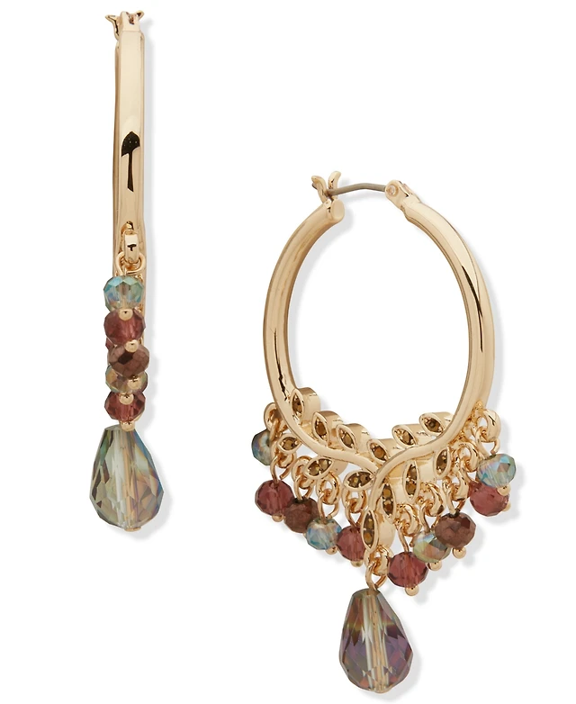 lonna & lilly Resin and Glass Stone Beaded Branch Hoop Earrings